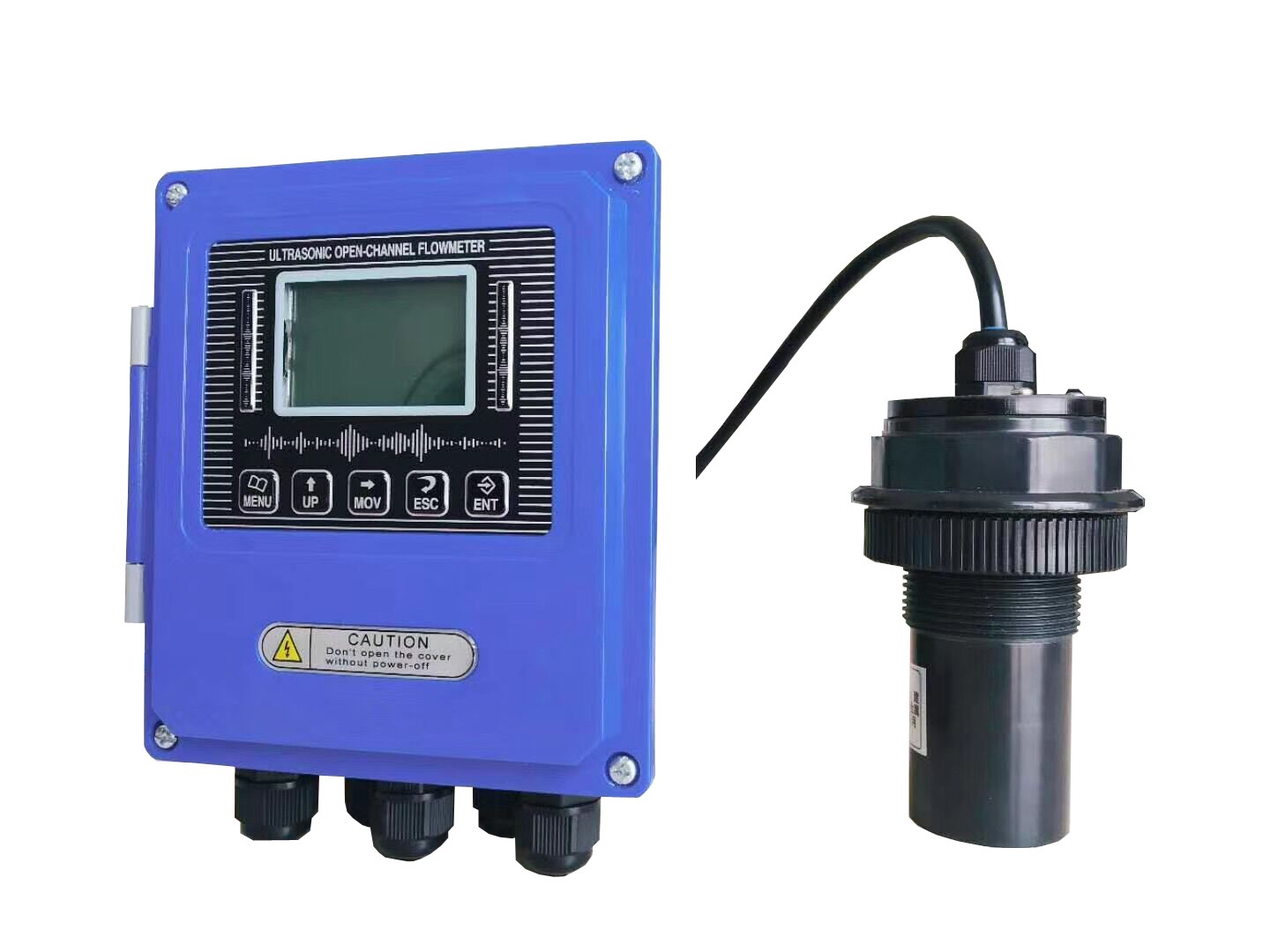 传感器发射超声波,利用时差法计算出探头到泥面的距离(图中的“水深”)‘h’,已知探头到池底部的距离是s’,泥位高度L=s-h其中安装高度需要用户使用前设置好,仪表壳同时显示泥位值和水深值。